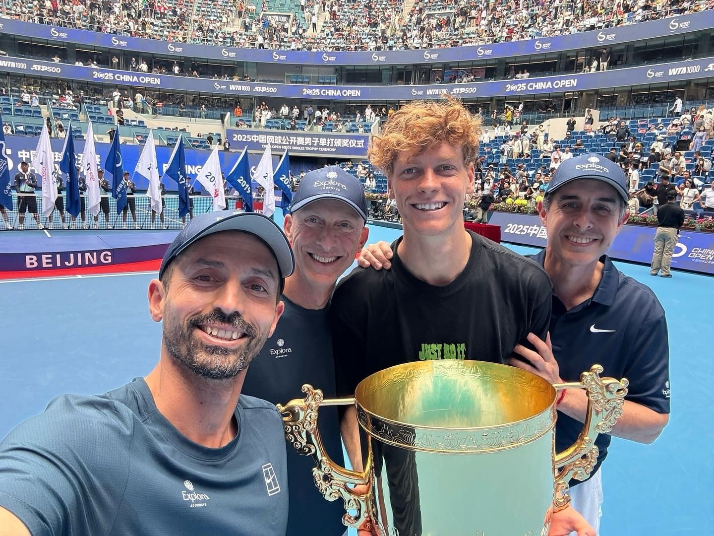 Jannik, e il team (assente solo Cahill), con in mano il coppone di Pechino.